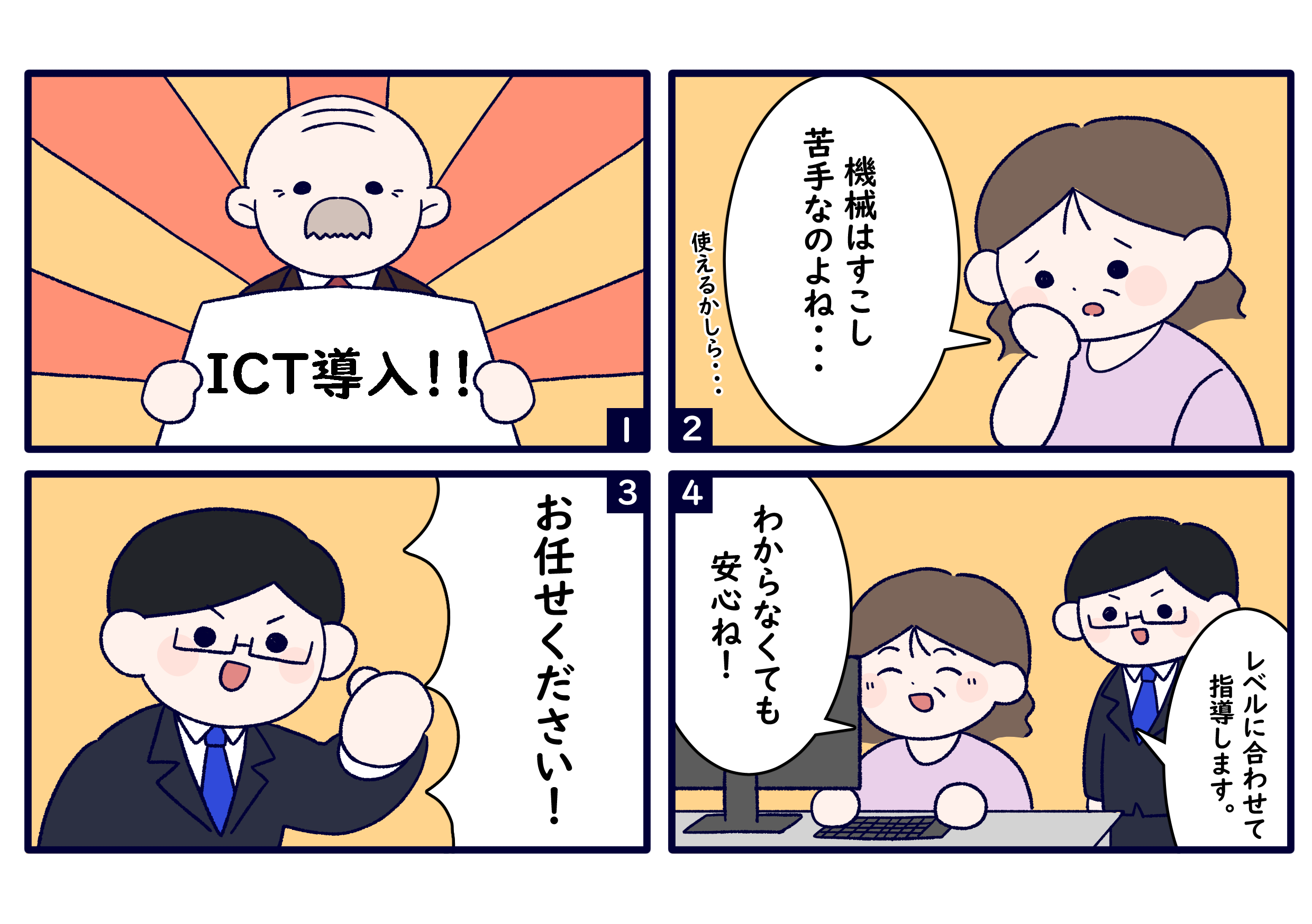 「学校にICTを導入する際、技術的なことが分からず不安もありましたが、この会社の教育支援があったおかげでスムーズに活用できました。機器の選定から運用指導まで、先生方の知識レベルに合わせた丁寧な説明があり、とても安心でした。」